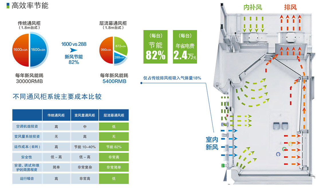 對排風柜內部氣流組織進行千次模擬,自主研發(fā)的產(chǎn)品;不但加速有害氣體的排出,同時減少了排風柜的總排風量。